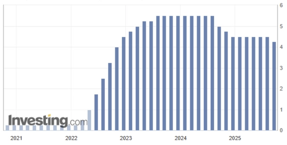 Zdroj grafu: Investing.com, Fed Interest Rate Decison, 17.9.2025