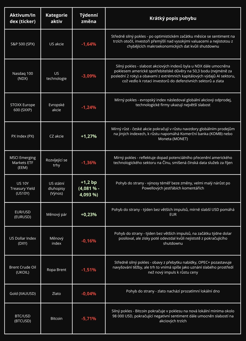Zdroj: Reuters, US government shutdown ties record, as congressional inaction takes toll, 4.11.2025; The Wall Street Journal, Lawmakers See Hope for Ending Record-Setting Shutdown, 5.11.2025; Reuters, Exclusive: US orders 10% flights cut at major US airports due to shutdown, 6.11.2025