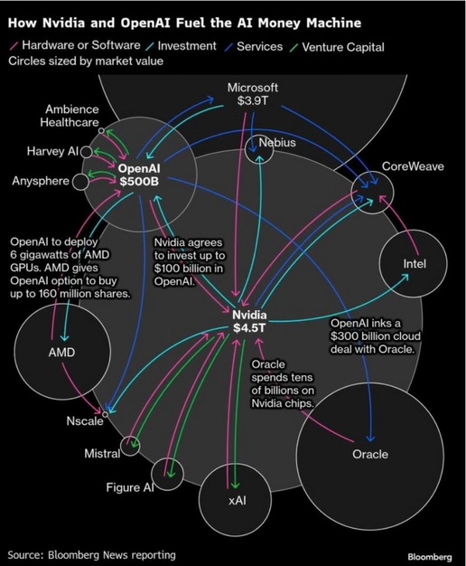 Palantir minulý týden v úterý po zveřejnění kvartálních výsledků klesl o 8 %, přestože společnost překonala odhady Wall Street a oznámila velmi optimistický výhled pro čtvrté čtvrtletí. Akcie Palantiru se ale obchodují s forwardovým P/E přes 200. To je číslo, které v mnohých investorech (včetně Burryho) vyvolává ostražitost a pragmatismus, protože na grafu bývají dlouhodobě neudržitelná. A podobně jako u Palantiru lze nalézt pár vrubek také u akcie Nvidia. Ta momentálně patří k nejpopulárnějším a nejvíce drženým titulům na světě, ale právě kolem ní se začíná objevovat tzv. cirkulární AI ekonomika. Velké technologické firmy se tu navzájem aktivně podporují, kupují si mezi sebou služby a tím vytvářejí dojem nekonečného budoucího růstu. Tento trend potvrzují i data o kapitálových výdajích (capexu) technologických firem. Růst investic do infrastruktury, datacenter a AI projektů se začíná veřejně často diskutovat, protože růst výdajů dosahuje tempa, jaké bylo naposledy vidět během notoricky známé dotcom bubliny. Firmy investují do infrastruktury, kterou samy využívají, a tím si navzájem zvyšují čísla, přestože jejich reálná produktivita stagnuje. Je to zvláštní druh kapitalistického ekosystému, kde si firmy navzájem fakturují optimismus a trh to odměňuje, jako by se jednalo o skutečný byznysový růst.